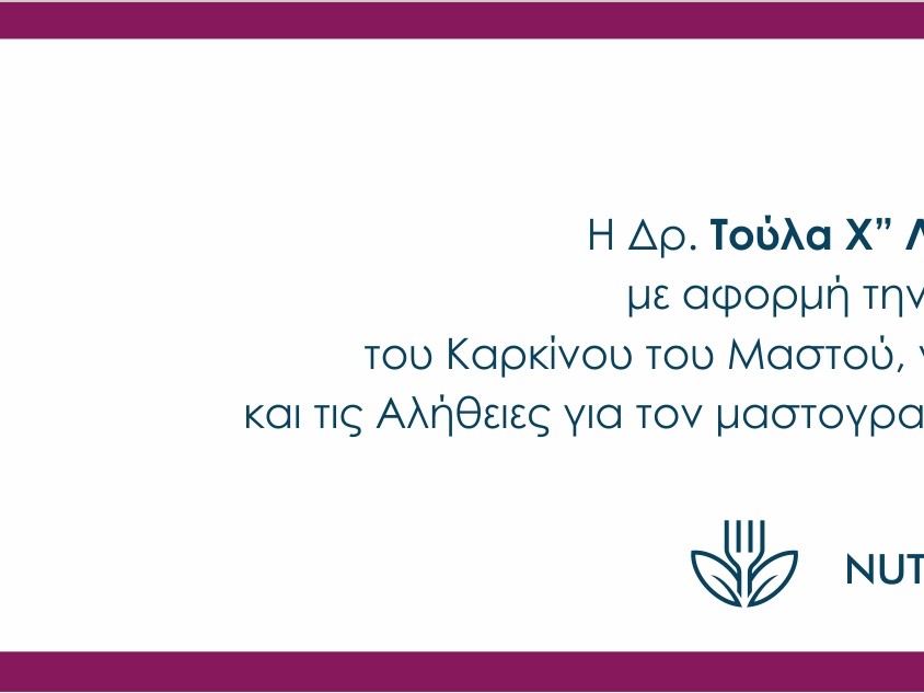 Η Δρ. Τούλα Χ” Λύρα, Ειδική Ακτινολόγος, με αφορμή την Παγκόσμια Ημέρα Κατά του Καρκίνου του Μαστού, γράφει για τους Μύθους και τις αλήθειες για τον μαστογραφικό έλεγχο του μαστού.