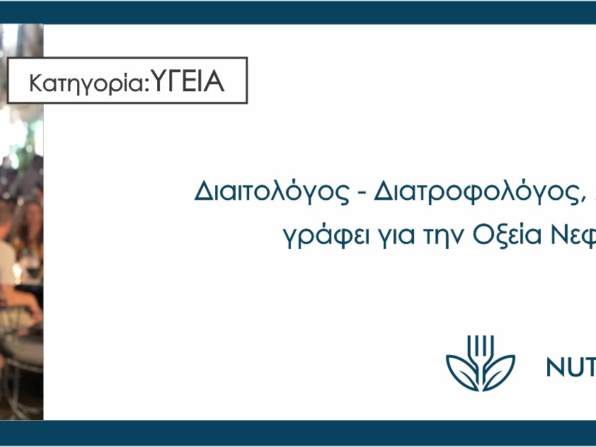 Η Αγγέλικα Κελεσίδου, Διαιτολόγος – Διατροφολόγο, MSc Κλινικής Διατροφής γράφει για την Οξεία Νεφρική Ανεπάρκεια (ΟΝΑ)