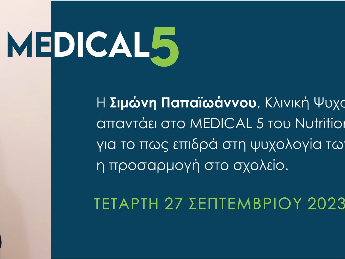 Η Σιμώνη Παπαιωάννου, Κλινική Ψυχολόγος, απαντάει στο MEDICAL 5 του Nutritionandhealth.care για το πως επιδρά στη ψυχολογία των μαθητών η προσαρμογή στο σχολείο